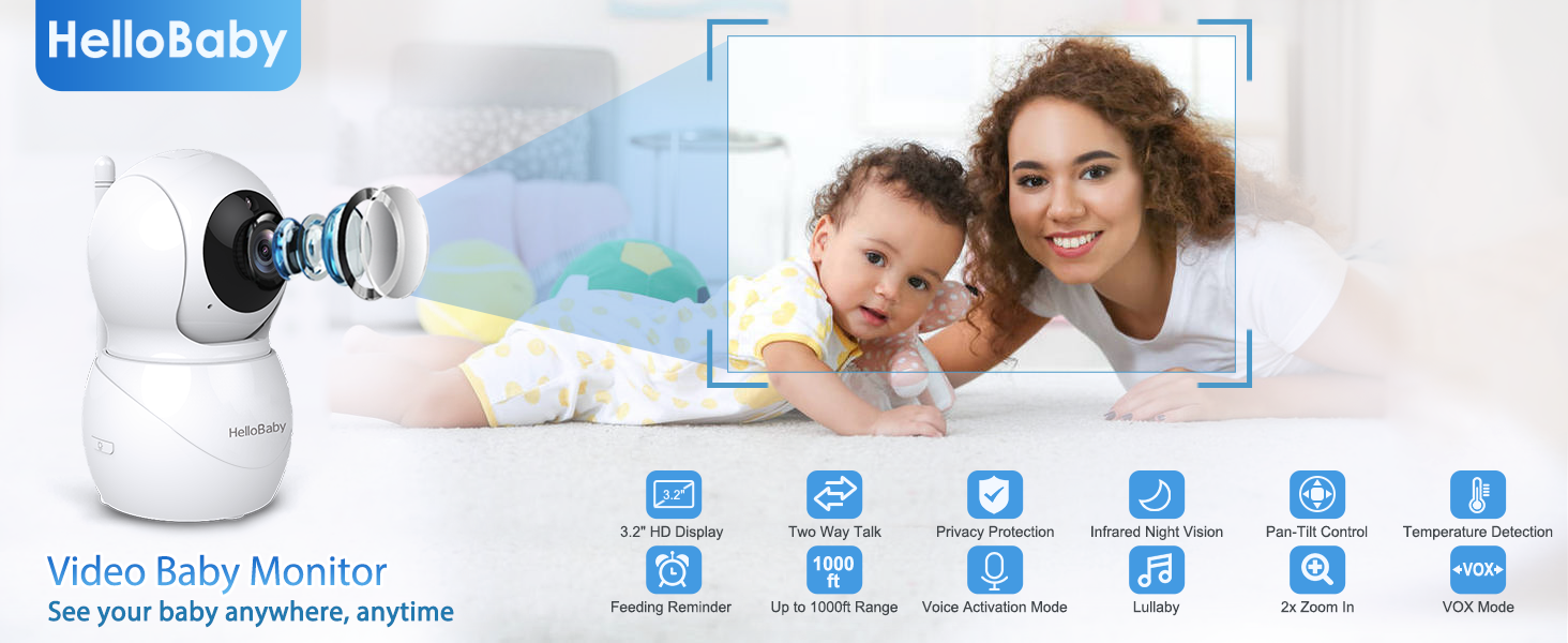 3.2" LCD DISPLAY & 2.4GHz WIRELESS TECHNOLOGY: This video baby monitor is equiped with a 3.2 inch TFT LCD display. Application of frequency hopping and digital encryption technology ensures secure and reliable connection.
