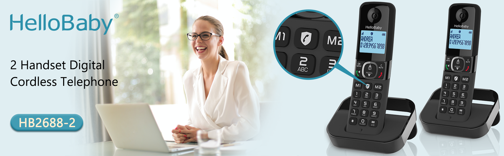 Hellobaby HB2688-2 DECT 6.0 Cordless Phone with 2 Handsets