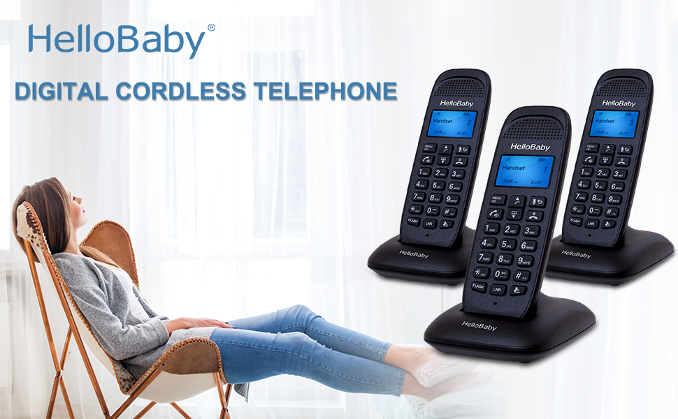 HelloBaby HB1688-3 DECT 6.0 Cordless Phone with 3 Handsets