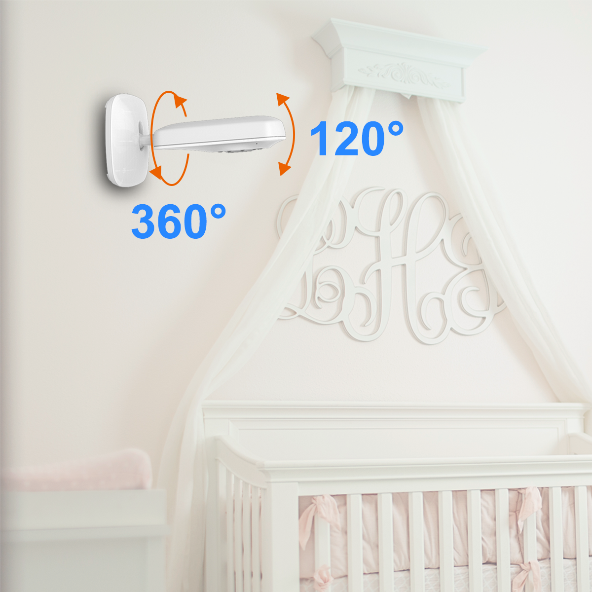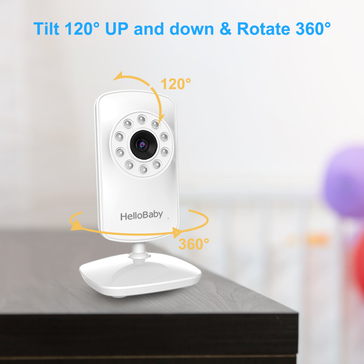 Tabletop or wall mounting? Choose one you like. Mounting kit is included in the package, this portable baby monitor camera can rotate 360° and tilt more than 90° manually.