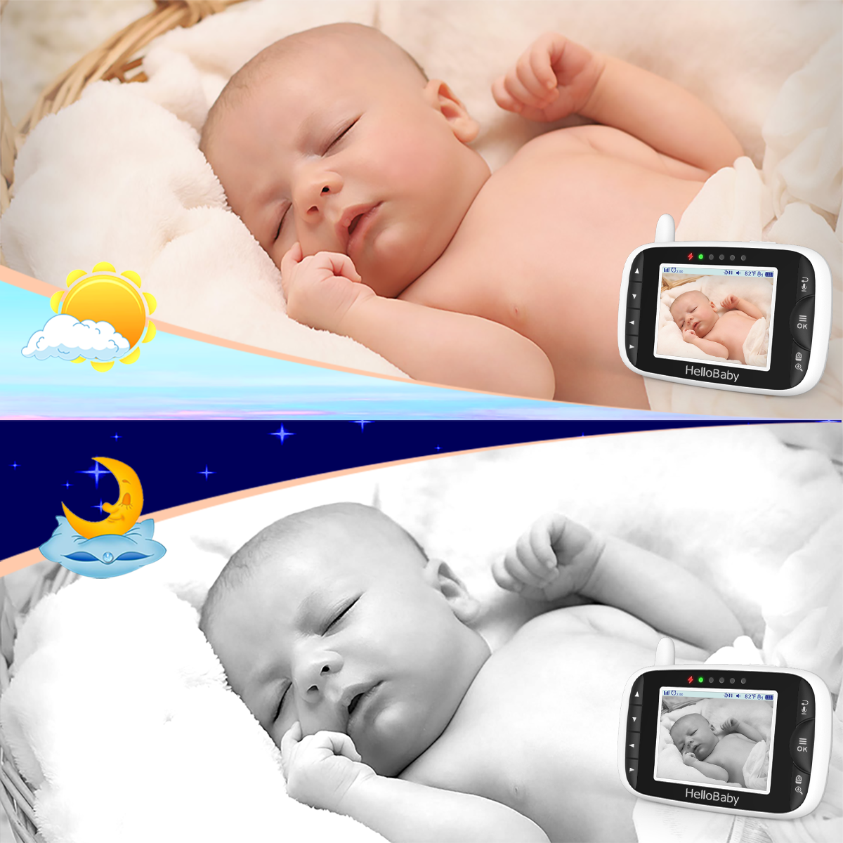 Compared with WiFi and APP required model baby monitor, this baby monitor makes it no way for someone to hack and connect into your WiFi and APP to see your baby. It is the best way to protect your privacy and your baby’s safety