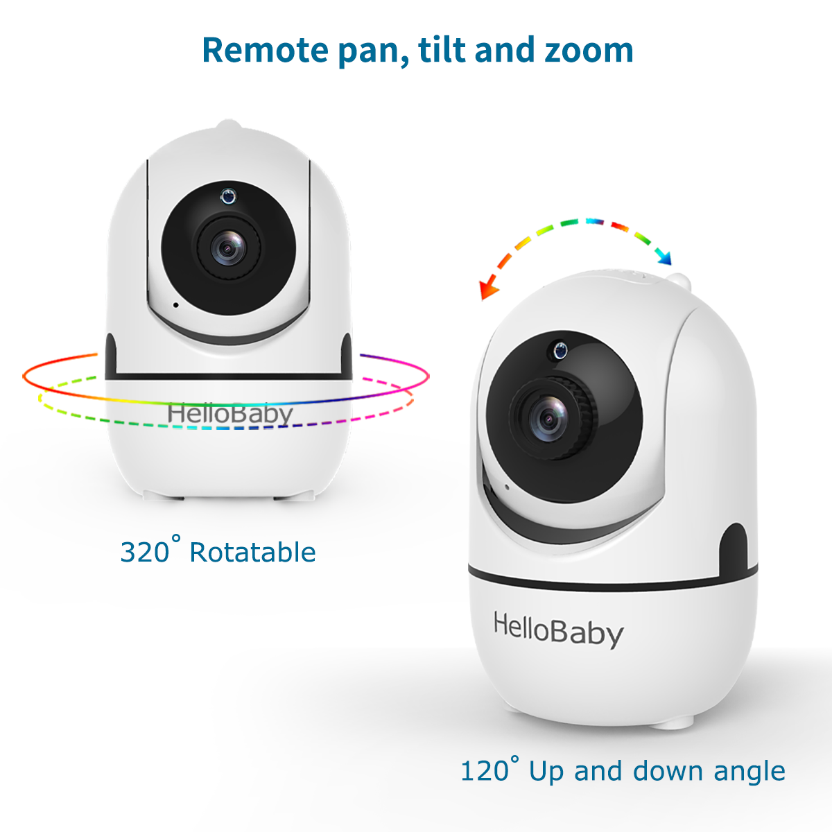 HelloBaby baby monitor camera features 2X zoom as well as an remote pan-tilt camera scan of you baby’s nursery which enables you to reach out to your baby instantly, no waiting around for any app or setup.